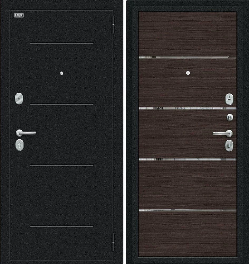 Надежная входная Дверь Браво Лайн Букле черное/Wenge Veralinga премиум класса по цене 30 033 руб. Большая толщина стали защитит от проникновения в ваш дом, квартиру или коттедж. Используется очень качественная фурнитура: замки, цилиндры, ручки, защелки. Покрытие и отделка двери изготовлено под внимательным контролем производителя. Дверь имеет долгий срок службы и гарантию.